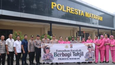 Mataram NTB | Fokuslensanusantara.com | 07/03/2026 – Suasana sore di Jl. Langko, depan Mapolresta Mataram, tampak lebih hangat dari biasanya. Jajaran Polresta Mataram melalui Satuan Reserse Narkoba berkolaborasi dengan Bagren, SPKT, Sat Tahti, serta ibu-ibu Bhayangkari menggelar kegiatan bagi-bagi takjil kepada masyarakat dan pengguna jalan yang melintas.