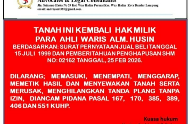 - Status sebagai kuasa hukum dalam perkara sengketa lahan dimaksud.